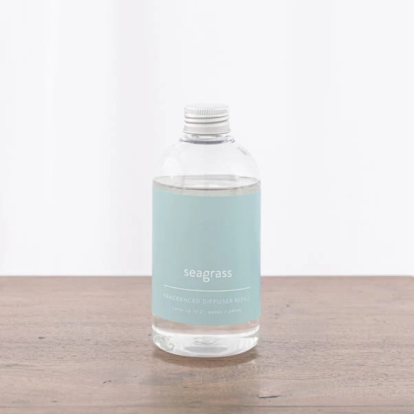 Add a refreshing scent to your home with our Seagrass Diffuser Refill. Rich sparkling citrus notes adds lift to a refreshing oceanic heart infused with soft sandalwood and vanilla on the base within a 240ml bottle. Lasts up to 21 weeks, this diffuser refill is perfect for topping up glass diffuser bottles once finished.