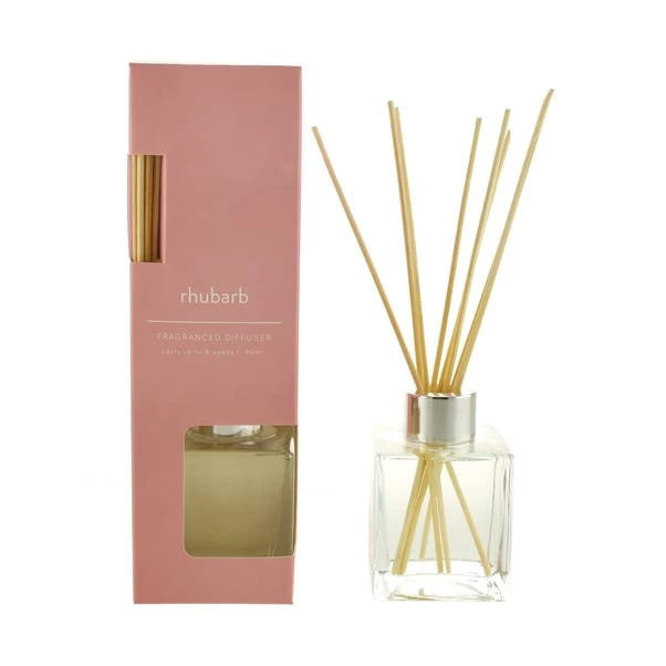 Add a rhubarb scent to your home with our 90ml rhubarb diffuser with 8 reeds. With Sweet and delicious notes of rhubarb and elderflower are beautifully balanced by freshly picked peony and fig leaf before settling on a creamy vanilla base within a 90ml glass bottle. This diffuser features a chic design that is suitable for any space in your home.