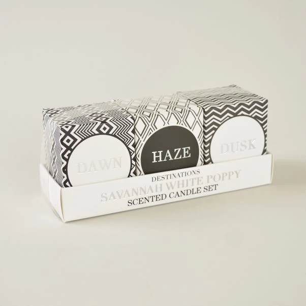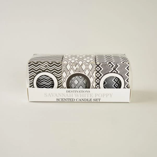 Presented in an elegant collection of frosted glass pots, this set of 3 mini votives have a 7 hour burn time and make the perfect piece for any room of the house. With a weight of 50g each, these votives with a fabulous Savannah white poppy scent will make the perfect gift.