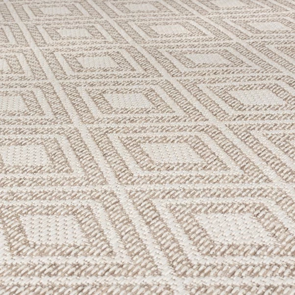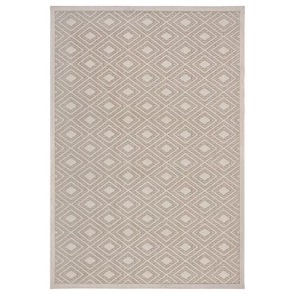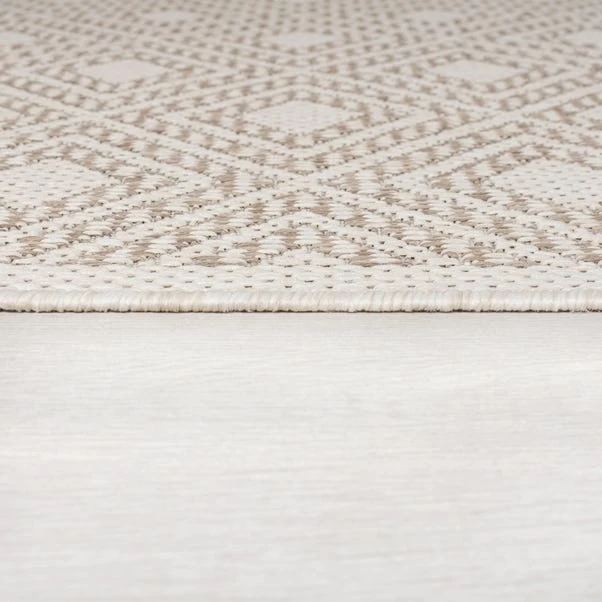 Choose the Almada rug design to add some geometric style to your outdoor space. Pairing neutral shades with a contemporary tessellating pattern in a traditional border design. Our Indoor/Outdoor collections use a 100% polypropylene composition to make our designs perfect for both indoor and outdoor living. Built for the outdoors with weather-proof and UV-resistant qualities, don’t worry about any mess, the Almada is stain-resistant and easy to clean with a simple hose down. The low-profile composition is perfect for sitting under furniture. We love using outdoor rugs to create social outdoor zones or add comfort underfoot in busy areas such as the kitchen.