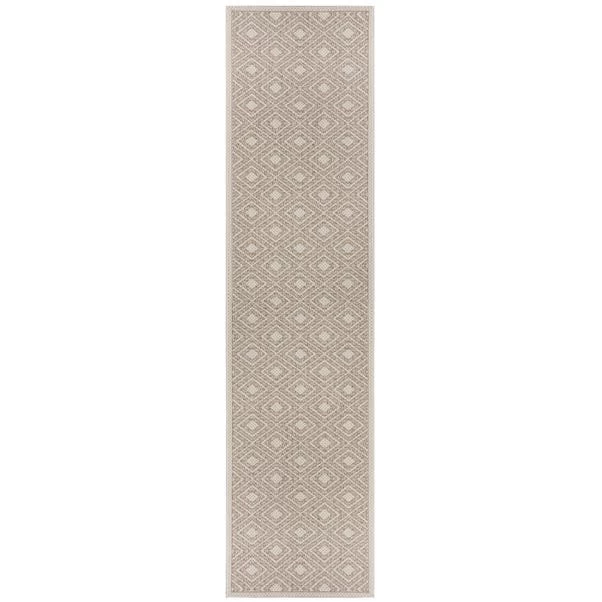 Choose the Almada runner design to add some geometric style to your outdoor space. Pairing neutral shades with a contemporary tessellating pattern in a traditional border design. Our Indoor/Outdoor collections use a 100% polypropylene composition to make our designs perfect for both indoor and outdoor living. Built for the outdoors with weather-proof and UV-resistant qualities, don’t worry about any mess, the Almada is stain-resistant and easy to clean with a simple hose down. The low-profile composition is perfect for sitting under furniture. We love using outdoor runners to create social outdoor zones or add comfort underfoot in busy areas such as the kitchen.