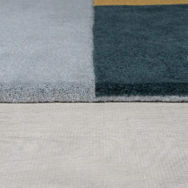 Alwyn’s on-trend design, using striking modern colours and bold geometrics, will provide living rooms and bedroom floors with a bold eye-catching focal point. With beautiful handcarved detailing defining each shape, Alwyn’s thick looped pile provides an irresistible feel. Made by talented Indian craftspeople using 100% natural wool fibres, this rug has natural sound and heat insulating properties. Alwyn will add a pop of colour and style to any living space.