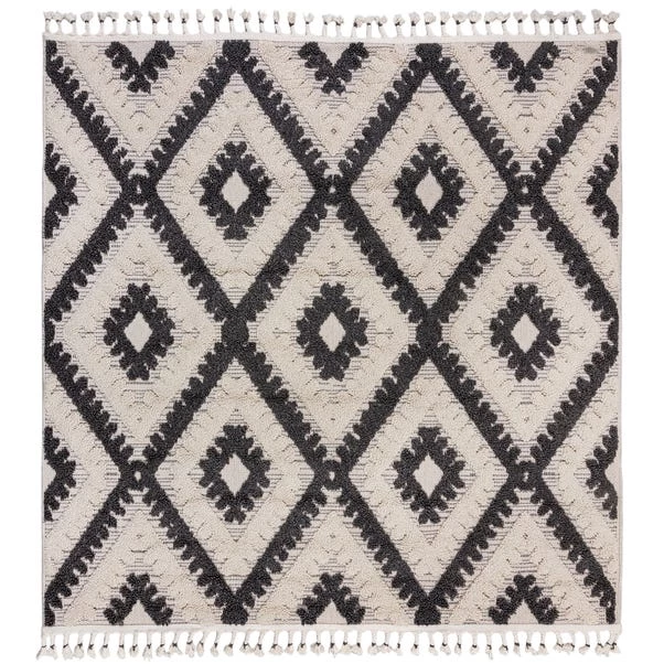 Say hello to the Amezri Square Rug. Pair bold monochromatic shades with artisanal style tassels and weaving to create the ideal laid-back, bohemian centre piece. The hand-tufted effect is ideal for getting some softness into your space. In 100% polypropylene pile these rugs are extra hard-wearing, ideal for busy homes. We love using the Amezri Square Rug to create a statement zone in living rooms and dining rooms.