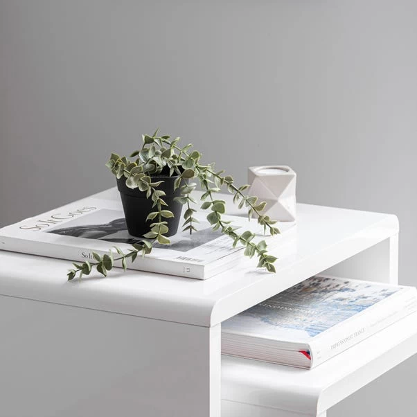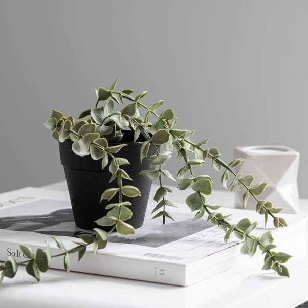 The perfect way to introduce a touch of greenery in your home, this beautiful Artificial Trailing Eucalyptus plant features realistic detailed leaves displayed inside a simple and stylish black pot. Perfect for complementing an array of home decors beautifully. Whether its placed on its own, or amongst a flower display, this is the ideal piece for any room of the house.