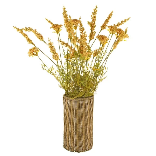 With a vibrant yellow finish, bringing a pop of colour to any room of the house, this beautiful delicate astilbe plant is set in a rattan basket for a modern and natural look. The rustic design and realistic finish, makes this piece ideal for displays on shelves, sideboards and tables, alongside being a low maintenance product.