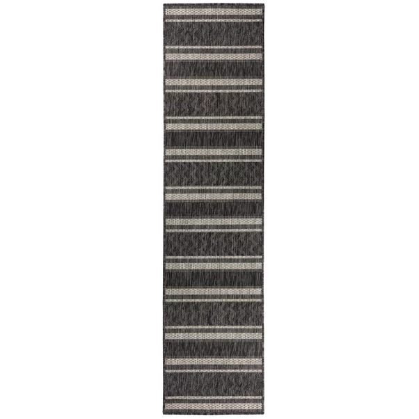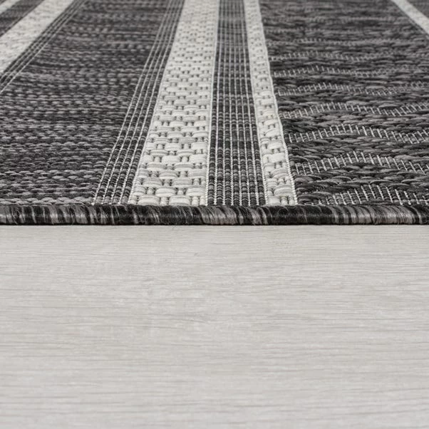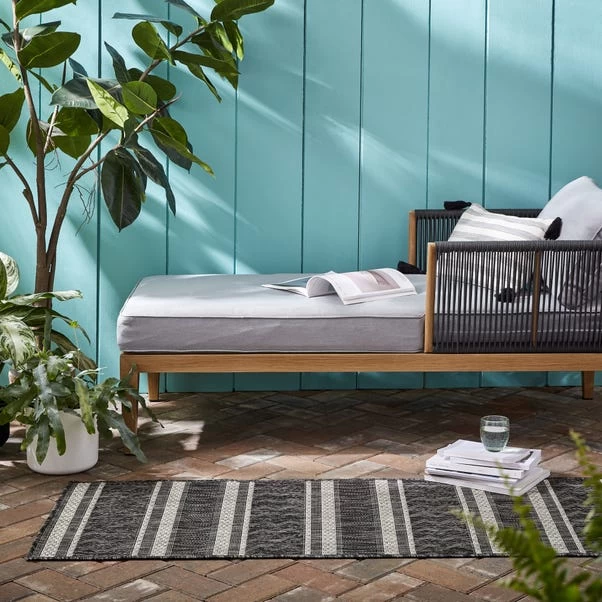 Perfect for indoor and outdoor living the Arya runner uses a weave-like texture and simple striped pattern to create a subtle centrepiece. In a polypropylene blend the Arya runner is weather-proof and packed with durable qualities. We love using the Arya stripe runner both indoors and outdoors, the low-profile composition makes it the perfect option for high-traffic areas or under furniture. Try your own Arya Stripe out in the kitchen for easy-to-clean, stain-resistant comfort underfoot.