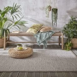 The Bellizi Rug from our Indoor/Outdoor collection pairs neutral shades with a subtle geometric design to inject contemporary style to your indoor and outdoor spaces. Our Indoor/Outdoor collections use a 100% polypropylene composition to make our designs perfect for both indoor and outdoor living. Built for the outdoors with weather-proof and UV-resistant qualities, don’t worry about any mess, the Bellizi is stain-resistant and easy to clean with a simple hose down. The low-profile composition is perfect for sitting under furniture. We love using outdoor rugs to create social outdoor zones or add comfort underfoot in busy areas such as the kitchen.