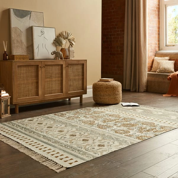 Our Bhavra Cotton Flatweave Rug showcases a beautifully bohemian print for a global yet feminine look. The flatweave construction and 0cm pile makes this design transitional, so it’s convenient to move or fold away. Hand-woven by skilled rug artisans and hand-finished with tassel detailing, this rug is made from 100% cotton. We love using this style both upstairs and downstairs, or layered with other natural fibre rugs.