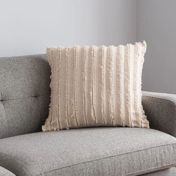 Our Boho Tufted Stripe cushion features raised stripes lending this cushion a sumptuously soft texture inspired by ancient crafts. Made from 100% cotton in a natural colourway, this square cushion features tufted stripes on the face and comes complete with a plump inner filled with recycled polyester hollowfibre for lasting fullness.