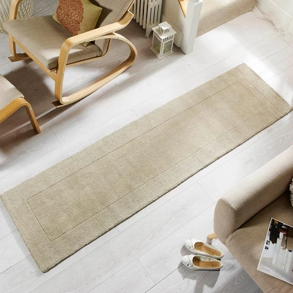 We recommend using a suction-type vacuum to ensure that rotating brushes won’t damage the wool pile. In the case of an accidental spillage, blot with a clean and dry cloth. Due to the Woollen composition of our Boston Wool Border runner, a small amount of fibre loss is normal, but simply trim loose fibres with household scissors. Rotate regularly for an even wear. When you receive your runner, we recommend re-rolling with the shaggy pile facing outwards for 24 hours in a warm room. This will help your runner settle flat with ease. Our Boston Wool Border runners can also be used on heated floors to keep you extra toasty!