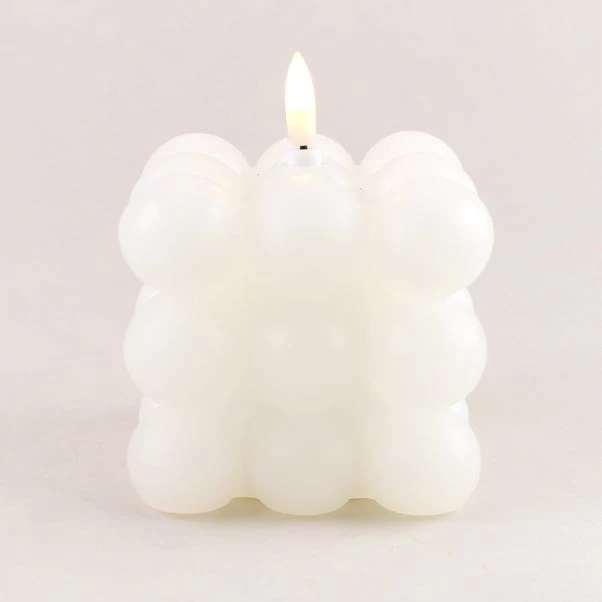For indoor use only, this beautiful Bubble LED candle features a modern colourway that will complement an array of decors and will look fabulous whether placed alone or as part of a display. Made with real wax, this LED candle emits a warm flickering light, giving a homely feel to any room of the house.