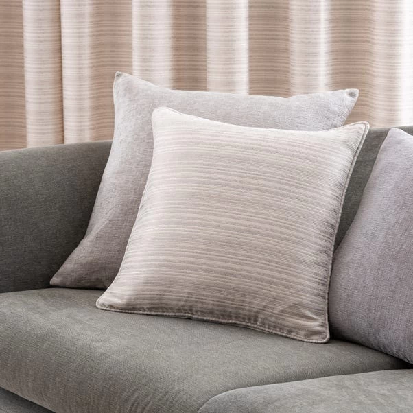 Featuring a subtle shimmer design in natural tones, the fancy woven yarn gives the Cali cushion a chic and contemporary look. Crafted from polyester fibres, the removable cover encases a plump recycled polyester filling. Coordinate the cushion with the matching Cali natural curtains and blind for a sophisticated look.