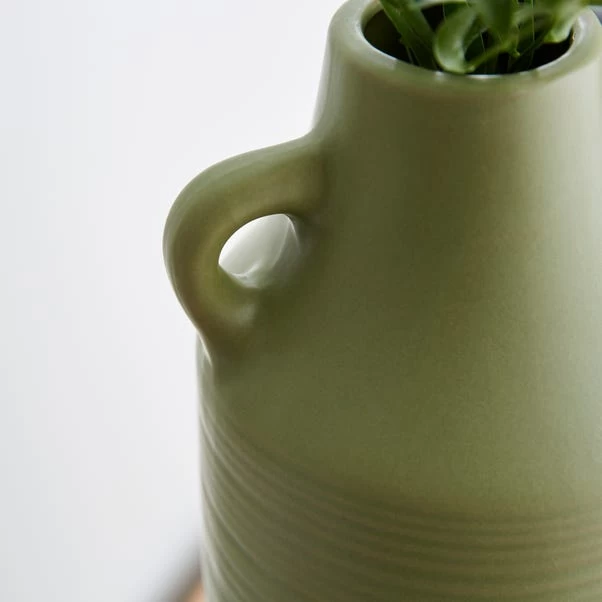With a glazed finish and ribbed design, this ceramic vase is the perfect addition to your home. Made from high-quality materials, its classic design will fit any decor, while its glazed finish helps it to stand up to everyday use.