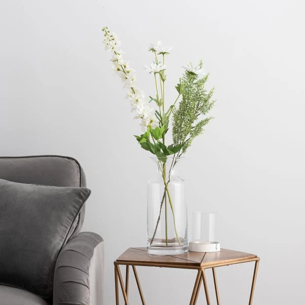 Boasting daisies and delphiniums, gift this letterbox bouquet to a loved one. The bouquet is made from individual stems that can be arranged to preference, either by cutting it down to suit smaller vases, adding in real flowers or splitting across multiple vessels. The faux flowers are longer lasting than real flowers with no maintenance required. Conveniently packaged in a box specifically designed to fit through a letterbox, our letter box bouquet makes the perfect gift. Just confirm the delivery address has a standard sized letter box with 1m of space behind it to ensure a successful delivery.