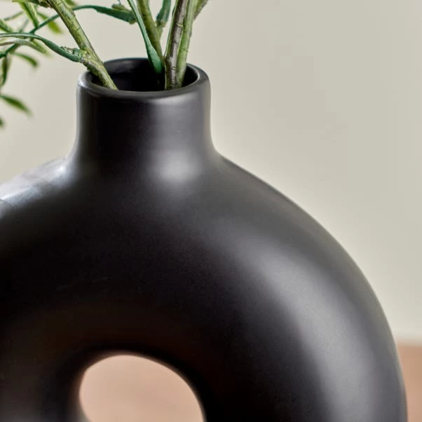 Bring a touch of minimal, modern quirkiness to your home décor with this fun donut shaped vase. Available in a range of colour options, this glazed finish ceramic vase will blend into your current home décor colour scheme whilst adding shape and a curved silhouette. With easy to wipe clean qualities and unique shape, this vase will be easy to maintain and catch the attention of all your house guests.