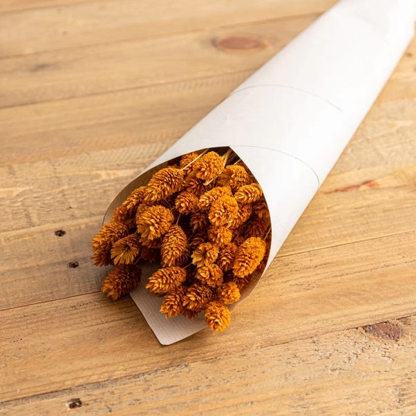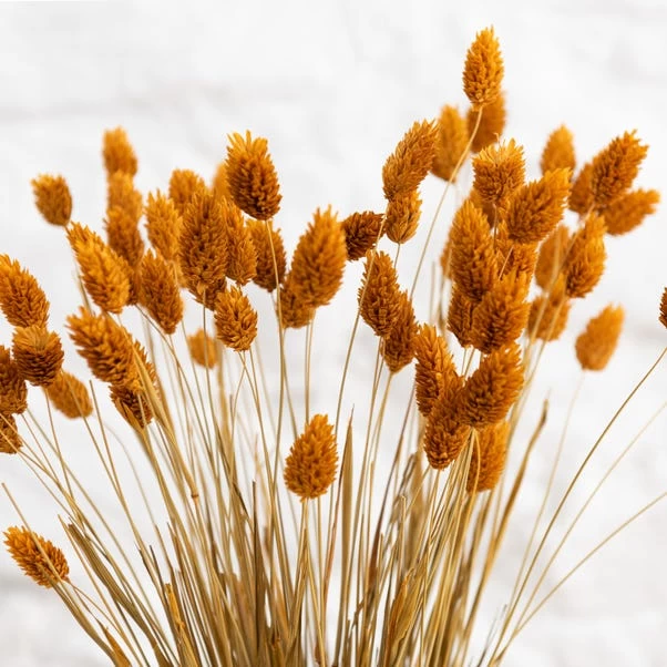 Bright and eye-catching, this bundle of ochre dried phalaris is presented in paper wrapping. Display the natural product in a vase or pot to show off the bundle’s elegance.