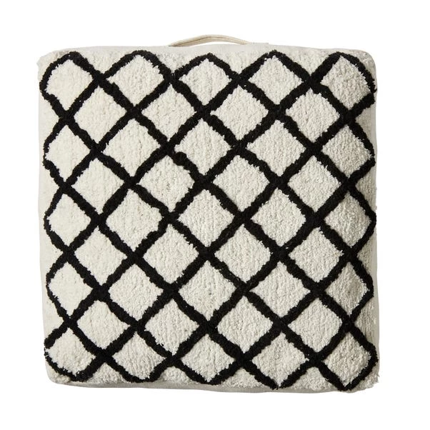Fully tufted on top with a geometric pattern, the Ekon Floor Cushion is the perfect way to add additional seating to your home, as well as a welcoming touch to your living areas. Filled with recycled fibre, the piece is both plump and attractive, with a monochrome colourway that will look stylish in any home.