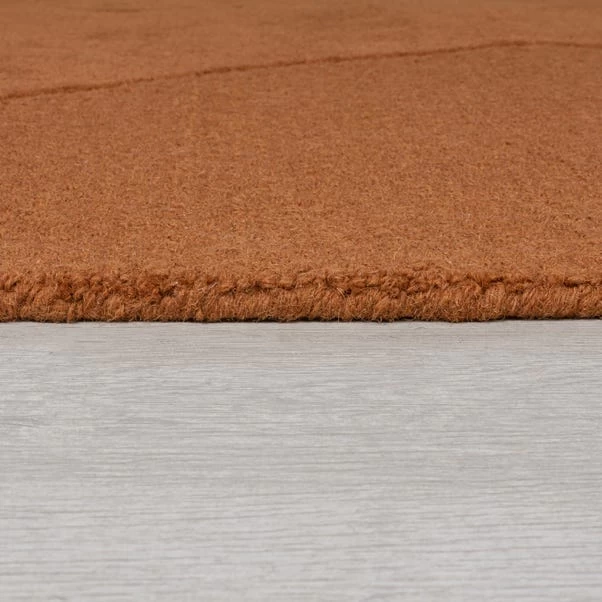 Elements Shaped Wool rug combines our favourite on-trend shade, butterscotch, with a statement semi-plain design. Hand-crafted with a textured cut-and-loop style, the Elements Shaped Wool rug is 100%, maximising naturally-occuring sound and warmth insulating qualities. The perfect rug for living rooms and bedrooms.
