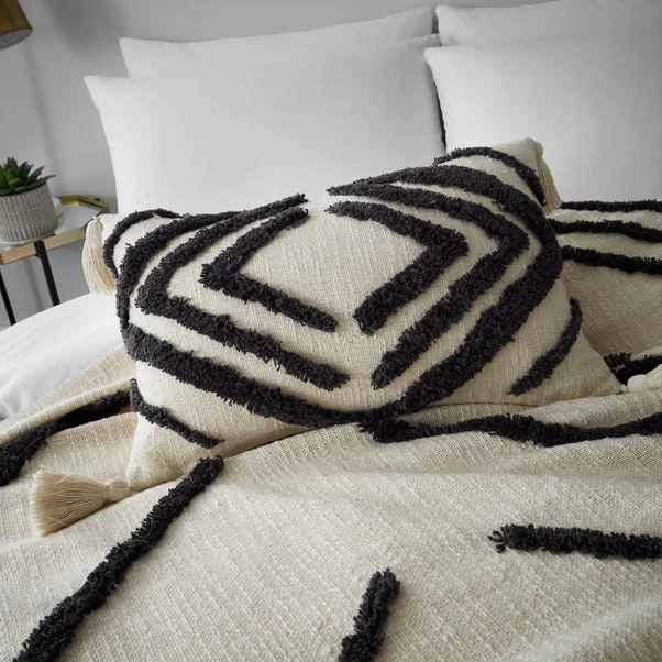 Boasting a stylish geometric charcoal tufted design, this cushion is perfect for adding a modern touch to your bedding. Made from 100% cotton this cushion is soft, durable, and easy to wipe clean. A matching throw is also available.