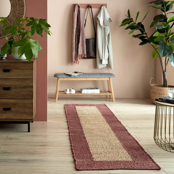 Add a pop of colour to your home with the Clara Hand Woven Jute runner. Pairing natural shades with a bold border for a playful twist on the classic jute look. Hand-woven in India by skilled rug artisans using eco-friendly jute yarn. Flatwoven and reversible, the Clara jute rug is the perfect versatile option for your space, ideal for defining a fun zone in a high-traffic space.