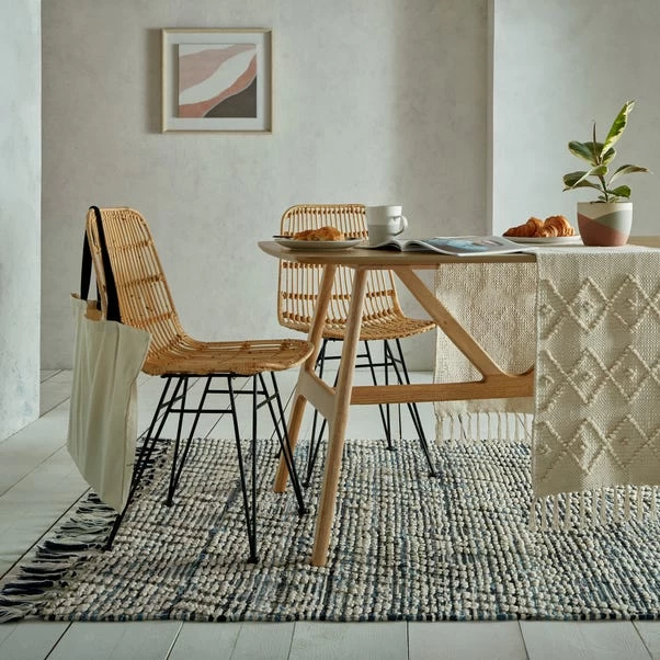 Interwoven denim with a statement geometric design creates a refreshing cerulean palette on the Diamond Denim Mix Flatweave rug.
