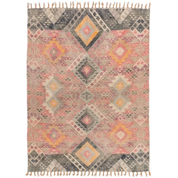 Inspired by authentic tribal design, the Kennedy Cotton Flatweave rug, pairs a warm palette with traditional fringed finishing. Handfinished in Northern India by skilled rug artisans, in a blend of cotton and chenille, maximising the soft-touch effect. The versatile design of flatweave rugs make them suitable for any space, we love using them in social zones and placing under furniture.