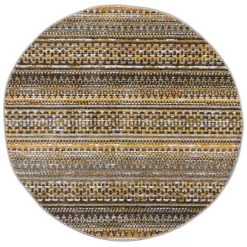 This is a dense hand-made rug. When opening, re-roll your rug pile out and leave in a warm room for 24 hours before putting in place, this will help to reduce wrinkles and curling from packing. Do not pull any loose threads, please cut them carefully with scissors to remove. Avoid prolonged exposure to direct sunlight as this may cause fading of the colour. Turn your rug regularly to ensure even wear and to reduce pressure marks from furniture. Wool fibres may shed when new and during use, this is a characteristic of this product and is not a defect and should reduce with normal use and regular vacuuming. Before using any cleaning products on your rug, test on an inconspicuous area first to ensure it does not affect the colour. Clean spills immediately by blotting with a clean dry white cloth – do not rub as this may stain the fibres. Vacuum your rug regularly to remove everyday dirt, we recommend the use of a suction type vacuum cleaner as a rotating vacuum brush can cause damage to the pile surface. We recommend the use of an anti-slip mat beneath your rug to prevent it from slipping and sliding out of place. Latex is used on the back of this rug. Please do not leave babies or young children unsupervised on this rug.
