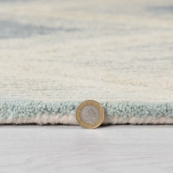 This is a dense hand-made rug. When opening, re-roll your rug pile out and leave in a warm room for 24 hours before putting in place, this will help to reduce wrinkles and curling from packing. Do not pull any loose threads, please cut them carefully with scissors to remove. Avoid prolonged exposure to direct sunlight as this may cause fading of the colour. Turn your rug regularly to ensure even wear and to reduce pressure marks from furniture. Wool fibres may shed when new and during use, this is a characteristic of this product and is not a defect and should reduce with normal use and regular vacuuming. Before using any cleaning products on your rug, test on an inconspicuous area first to ensure it does not affect the colour. Clean spills immediately by blotting with a clean dry white cloth – do not rub as this may stain the fibres. Vacuum your rug regularly to remove everyday dirt, we recommend the use of a suction type vacuum cleaner as a rotating vacuum brush can cause damage to the pile surface. We recommend the use of an anti-slip mat beneath your rug to prevent it from slipping and sliding out of place. Latex is used on the back of this rug. Please do not leave babies or young children unsupervised on this rug.