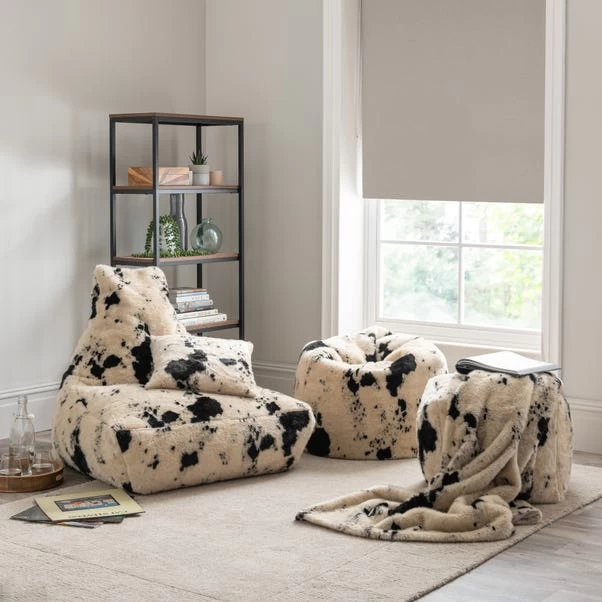 The faux cow hide bean chair in black is the ultimate style statement. Relax into this luxuriously soft to touch faux cowhide bean chair, generously sized for maximum comfort and finished with a non-slip base made from a durable non-woven. The bean chair is generously filled with polybeads providing comfortable seating and support at the same time. Pair with other items in the Cow hide range.