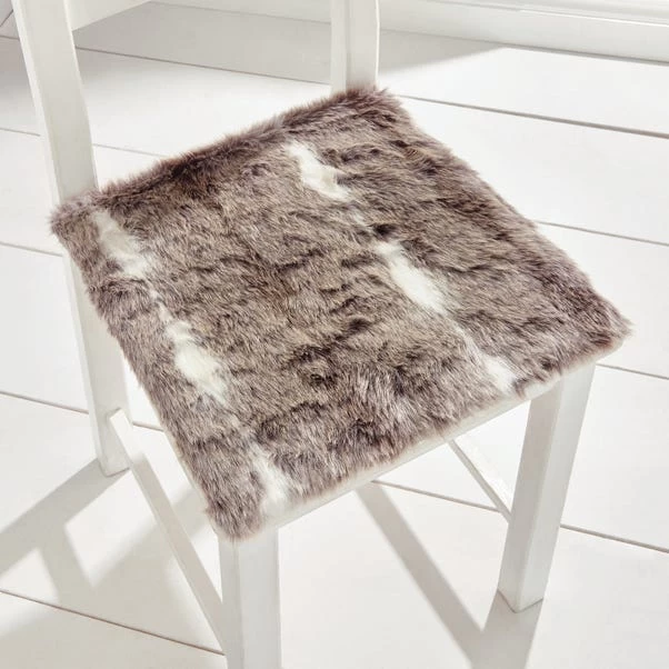 Ideal for adding a soft and glamorous touch to any chair, this faux fur seat pad in a classic grey colourway would compliment any chair beautifully. Crafted from polyester, this seat pad is durable and easy to clean.