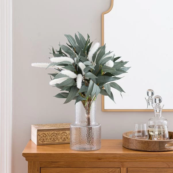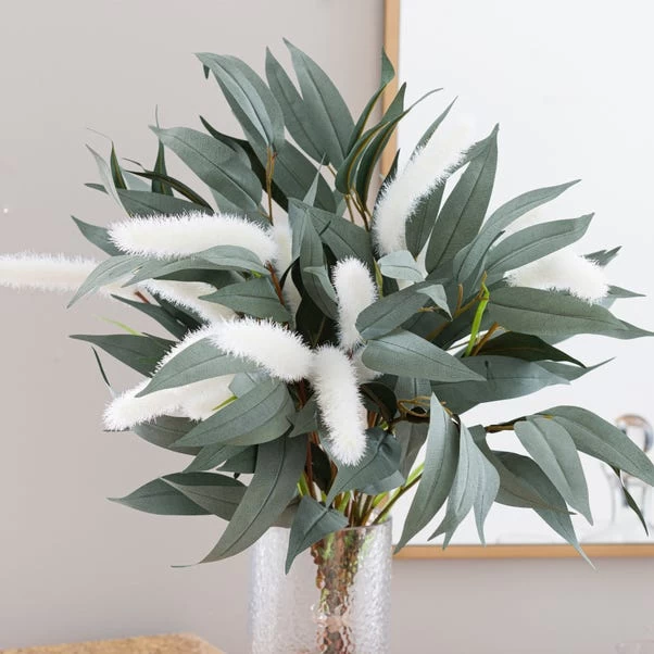 Perfect to send as a gift or to keep for home display, this beautiful foliage bouquet featuring delicate foxtail grass and long leaves has a minimal, modern design, perfect for any room of the house. Hand-tied by florists in the UK and presented with recyclable kraft paper wrap, this artificial bouquet is delivered in a specialised bouquet box to keep it secure and safe.