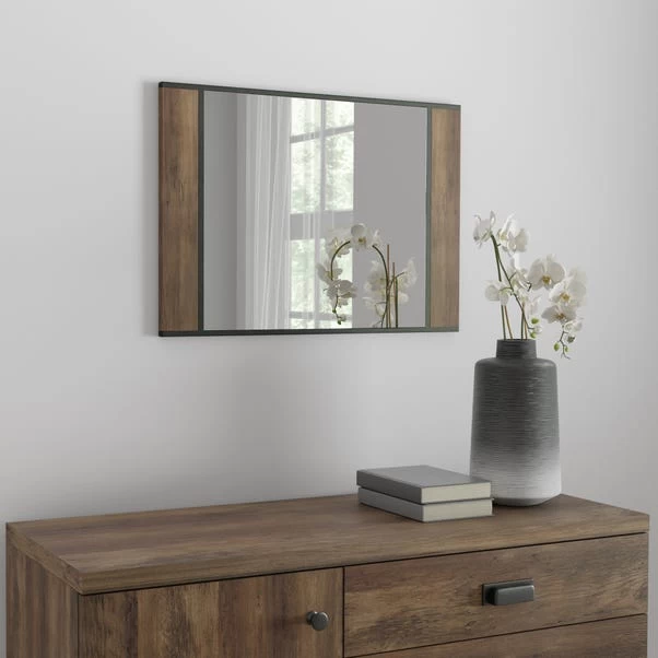 This stunning wall mirror will add a stylish touch to any room of the house, with its modern, wooden colourway and simple design.