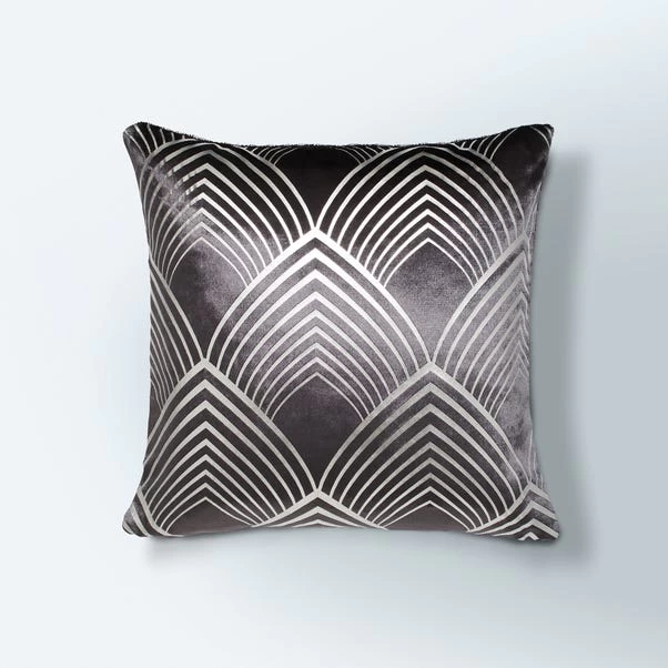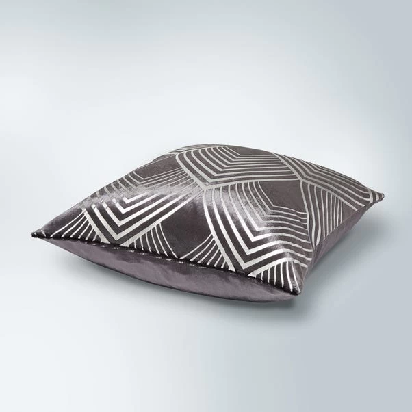 Designed with a contemporary silver foil print design, this cushion is crafted from a luxurious velvet style fabric and is filled with plump polyester hollowfibre for maximum comfort. The smooth cover is fully removable for easy care and features a secure zip to safely house the cushion filling.