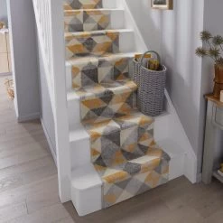 Our Geo Squares Stair Runner pairs contemporary geometric design with complimenting on-trend shades, to give your stairs a style update. The low-profile composition is crafted from 100% polypropylene, the perfect hard-wearing composition for high-traffic stairways, maintaining a fresh look for as long as possible, as well as helping to insulate against noisy footsteps.