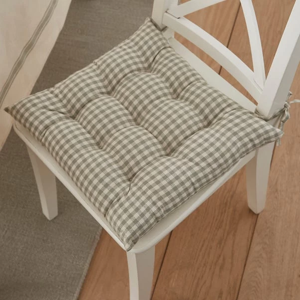 Our seat pad features a classic gingham check design in a beautiful sage colourway. A comfortable polyester filling is held in by a 100% cotton fabric with 9 stitches across the seat pad. Coordinating items are available to purchase within the sage check range.