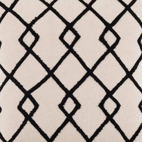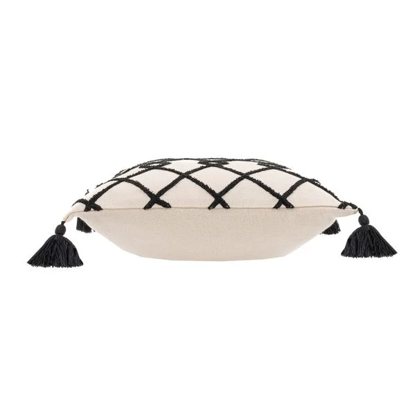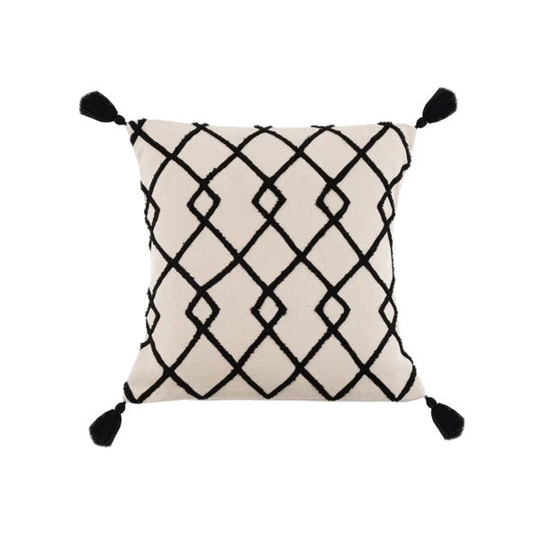 This striking cushion case is made from 100% cotton and features a geometric trellis design and black tassel finish. The detailed cushion cover is finished with an envelope opening on the reverse and is machine washable.