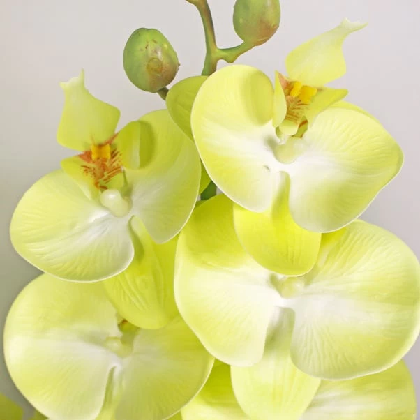 This beautiful premium phalaenopsis orchid spray has a classic design and colourway that will complement an array of home decors beautifully. The realistic design made with high-quality, real-touch material, it is ideal for vase display, either alone or as part of an arrangement.