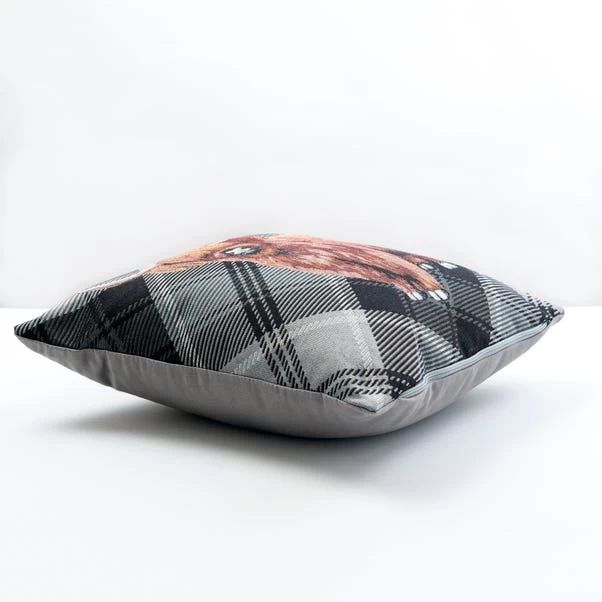 Crafted with a woven tapestry design for a beautiful finish, this cushion features a charming highland cow design against a timeless grey check backing and is manufactured in the UK from quality materials. This cushion is complemented by a plain 100% cotton grey reverse for added versatility and features a removable cover for convenient care. Great for bringing a touch of quirky style and character to any room, this cushion is filled with plump polyester for maximum comfort and lasting fullness.