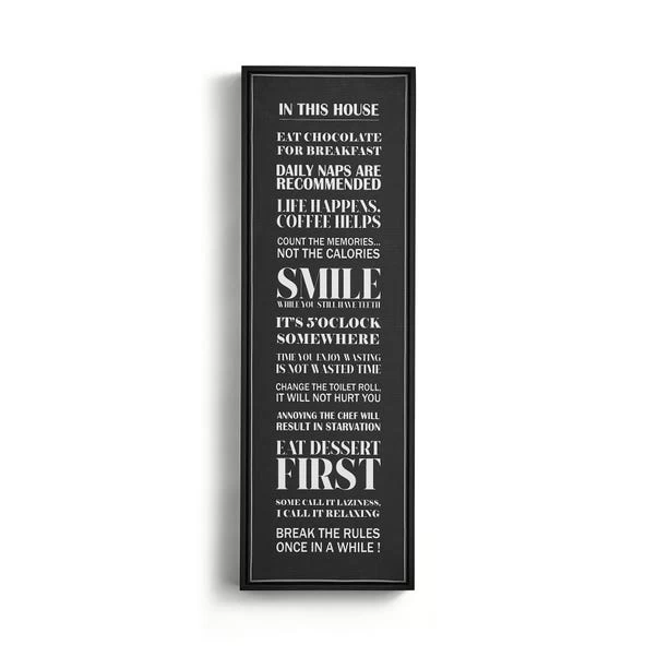It’s okay to ‘break the rules once in a while’, so why not upgrade your home decor with this monochrome House Rules canvas print. Featuring inspirational quotations and rules to personalise yours or a loved ones home. Why not break the rules hey?