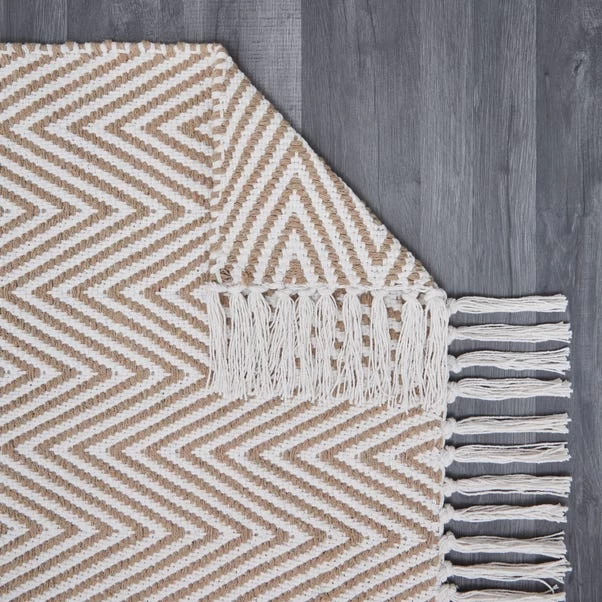 Perfect for any room, this Jenson Rug boasts a modern geometric chevron woven design that looks beautiful in any home! Available in a range of colours and sizes, this stunning rug features tasseled edges and a chunky flatweave texture.