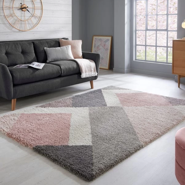 Add a contemporary element to your home with this stunning Geometric design rug that compliments any home decor and interior. The Kampala rug features pastel palettes with striking shapes, to create a beautiful multi-tonal centerpiece for your living space. The soft shaggy pile injects warmth and texture for extra comfort and softness. Keeping quality and style in mind, this on-trend rug has been crafted with enhanced durability of the polypropylene composition that is easy to care for so you can show this rug of in high traffic areas.