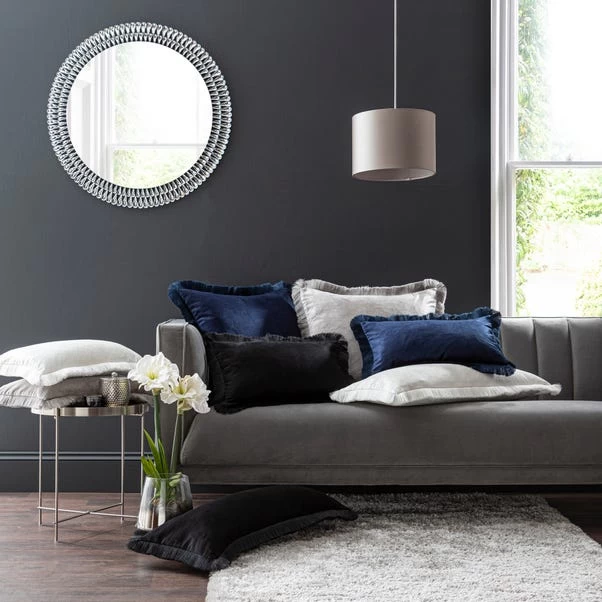 Our Keston rectangular cushion is the ultimate statement in opulence and luxury. Crafted from a shimmering cotton/viscose velvet and finished with a dazzling fringe, this cushion has been filled with a feather insert for ultimate comfort. Choose from a range of modern colours and mix and match from different sizes for a truly glamorous look.