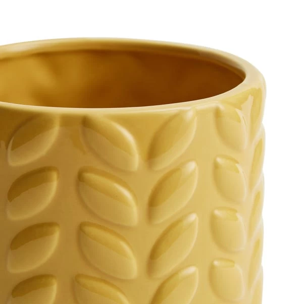 This plant pot comes in a beautiful ochre colourway and boasts an elegant leaf pattern. This piece is easy to wipe clean and will make the perfect addition to any room.