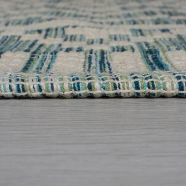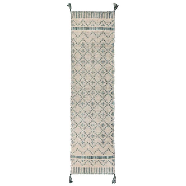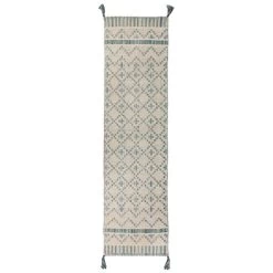 A cotton blend in on-trend artisanal shades is the ideal choice for those narrower spaces. Leela uses complementary shades of ivory and teal to create a cool and calming spot, this runner is also reversible so perfect for high-traffic areas. Perfect to run along hallways or along double doors for a summery look.<