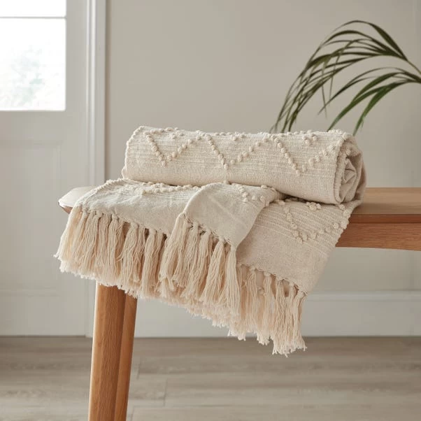 Designed with macramé detailing, this soft feel throw is crafted from 100% cotton with a delicate fringed edging. This throw is an ideal addition to any bed, sofa, or chair for a cosy feeling.