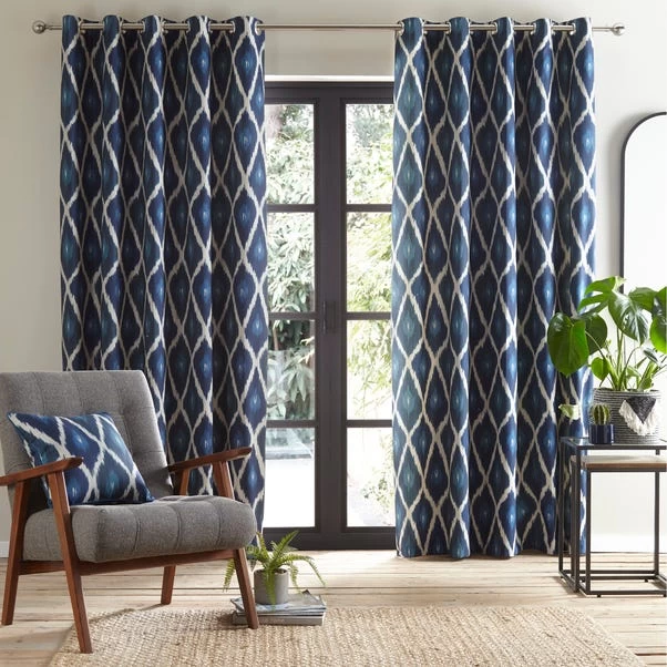 Designed with an enchanting Ikat print finished in a rich navy blue colourway, the Mahara cushion is crafted with a 100% cotton cover and is perfect for bring a striking touch to any space. Designed with a smart self-piped edge finish, this cushion comes complete with a 100% recycled polyester filling and a removable cover for easy care. Co-ordinating curtains are also available.