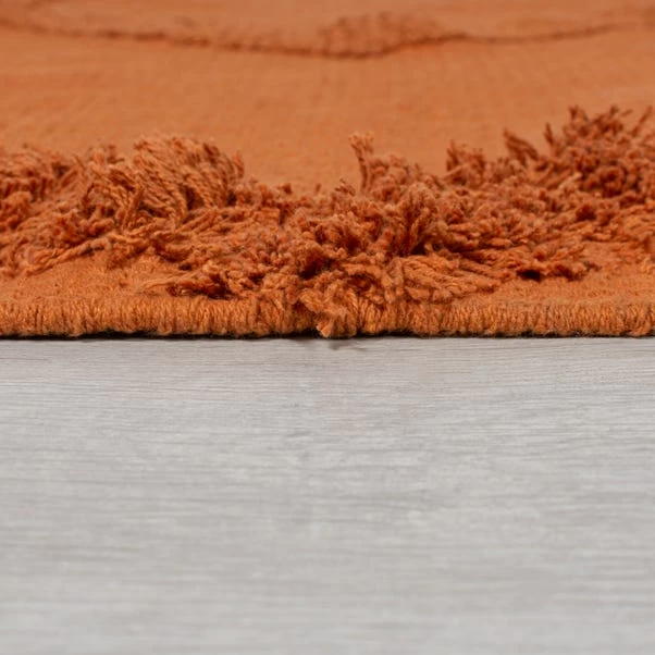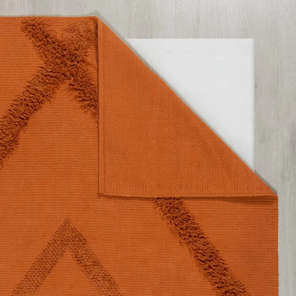 The Mala Handwoven Rug pairs a striking ginger shade with large scale geometrics to create a tribal-inspired design. Hand-woven by skilled rug artisans in cotton and polyester, the Mala rug uses hand-tufted areas to add texture underfoot. Use the Mala design to add a pop of warm colour in bedrooms and living rooms.