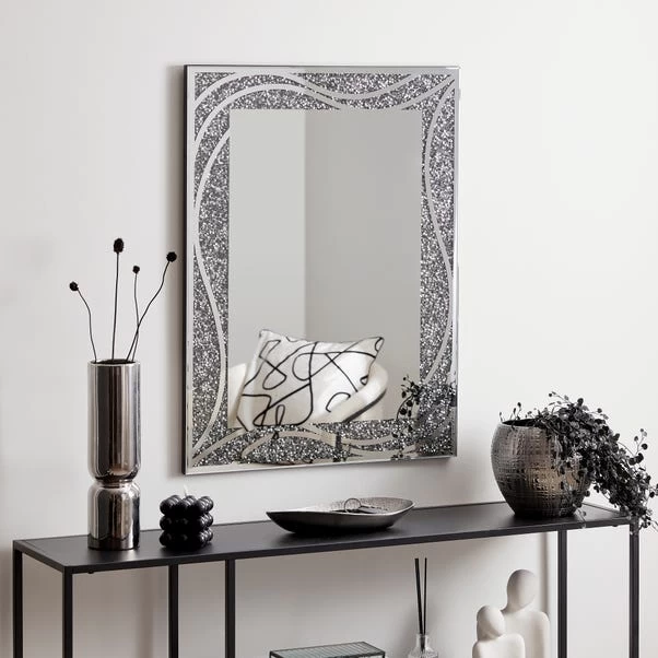 Featuring a traditional rectangle shape with an elegant decorative frame, this stunning mirror would make a glamorous and luxurious addition to your home. The frame features a smokes diamond frame design, complete with a silk screen finish to create a modern, yet timeless look.
