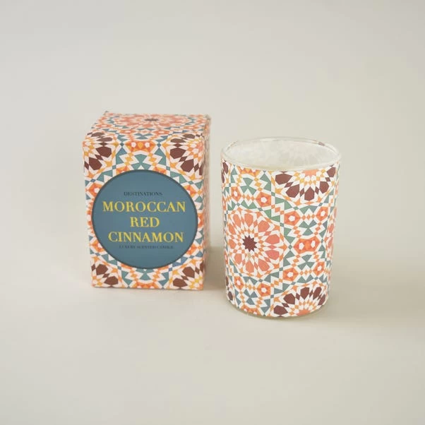 Set within a 220g glass pot, this stunning candle has a 26 hour burn time, adding a fragrant scent to any room of the house. Packaged in a beautiful oriental inspired gift box with wax pot to match the theme, this piece has a serene Moroccan red cinnamon scent.