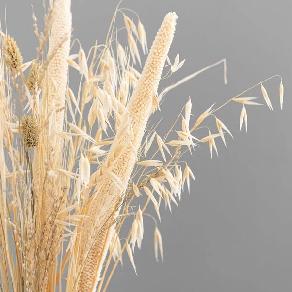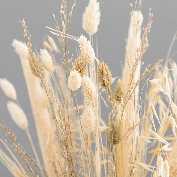 Display this stunning dried mix arrangement in a vase or pot in your home. The pretty wildflower design has a mix of bleach and natural coloured stems.